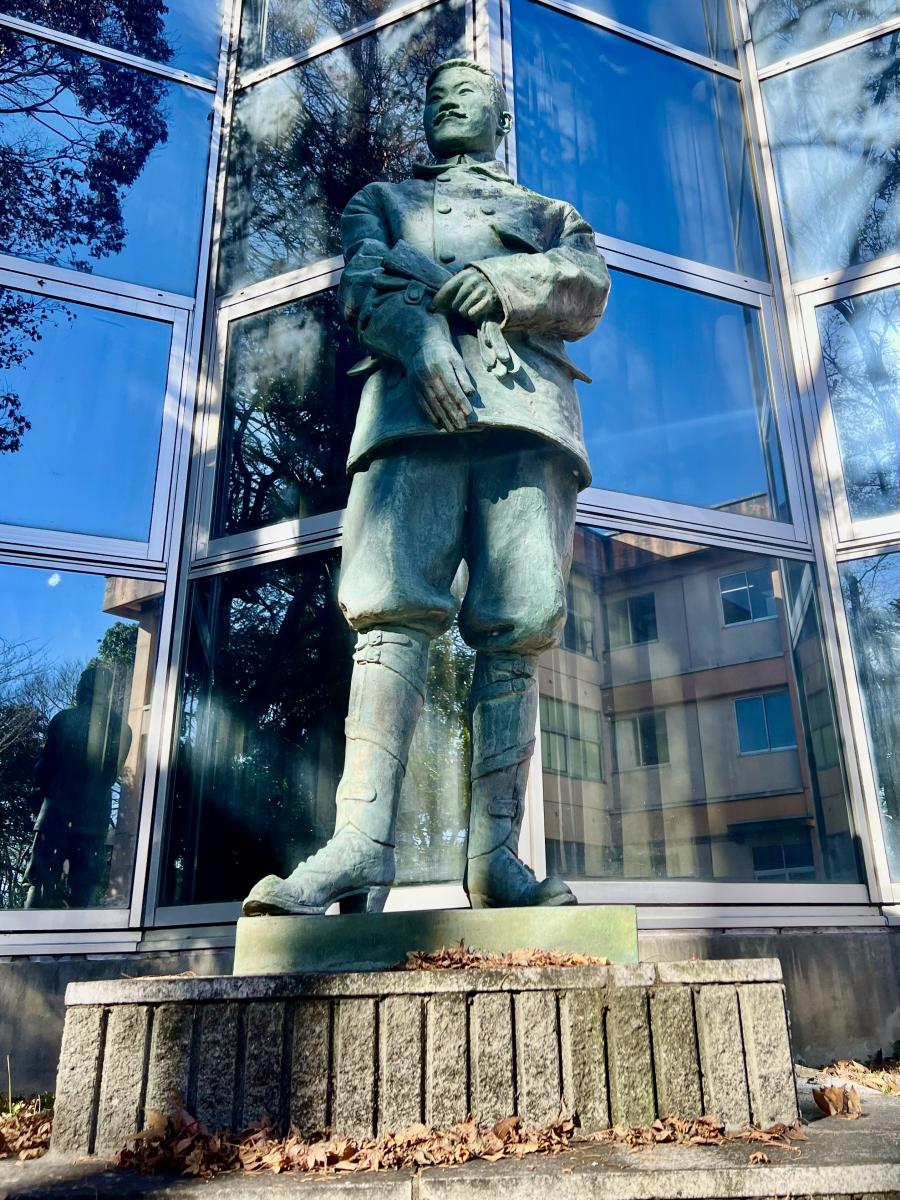 今日は「飛行機の日」。1903年のこの日に、ライト兄弟が人類初の有人動力飛行に成功したことを記念するものです。米国のライト飛行学校等で学び、1913年(大正2年)に日本の空に羽ばたいたのが、武石浩玻。 来年の学苑祭テーマ「天翔る」を地で行く、本校が誇る卒業生です。校内には彼の銅像のほか、飛行機について探究した成果をまとめた大著「飛行機大全」が残されています。